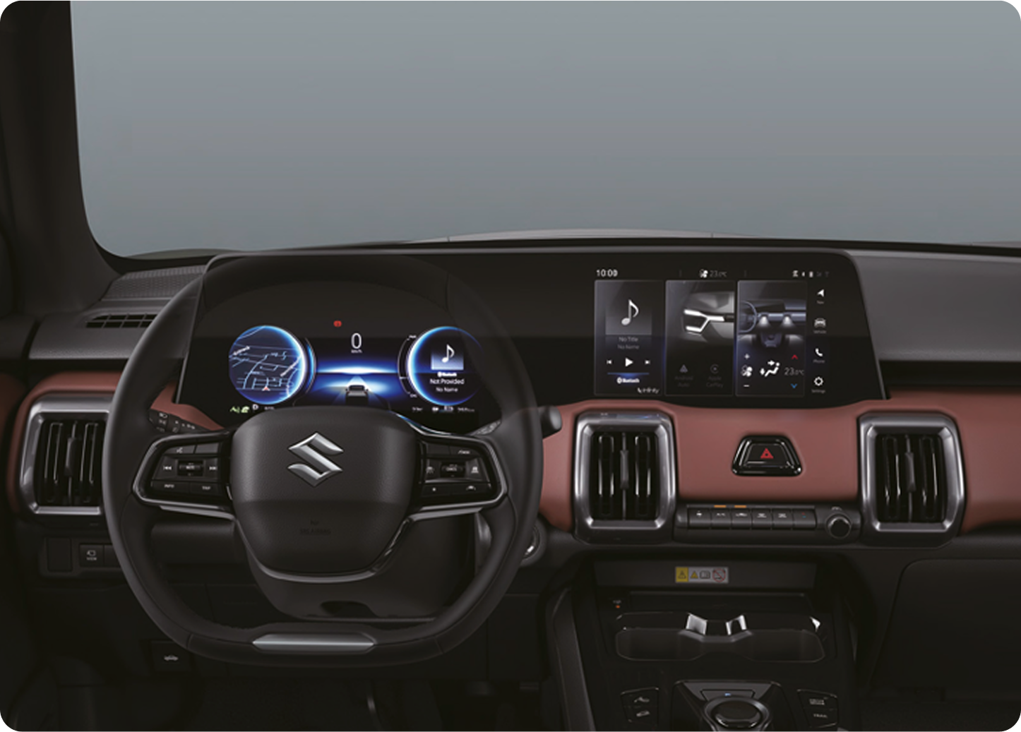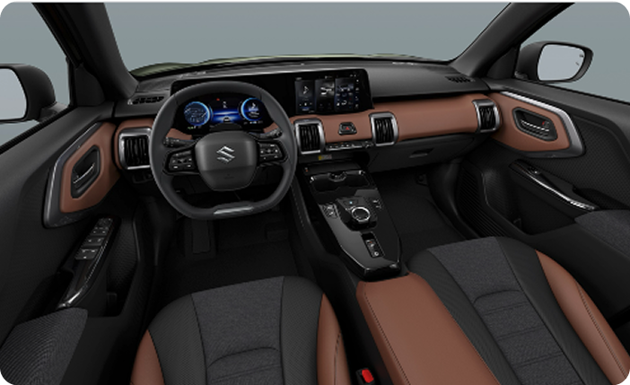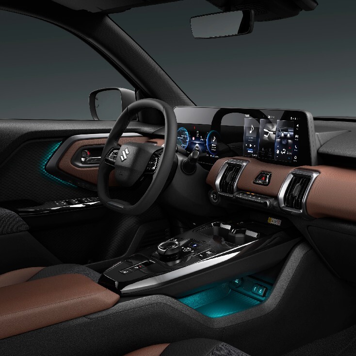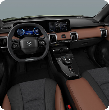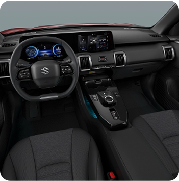 O novo e VITARA utiliza a plataforma de novo desenvolvimento HEARTECT-e, específica para veículos elétricos. Com uma estrutura leve e elevada proteção para sistemas de alta voltagem, oferece um interior espaçoso e custos validados. A sua superfície principal elimina os elementos sob o piso para maximizar o espaço da bateria.